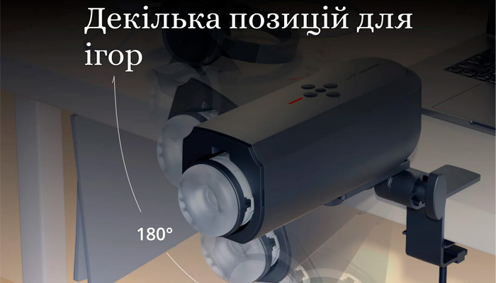 Серед особливостей відзначимо і той факт, що у комплекті з іграшкою є настільне кріплення. Можливість зміни його положень на 180 градусів відкриває шанс вивчити нові пози, а ще звільнити руки для максимального релаксу.